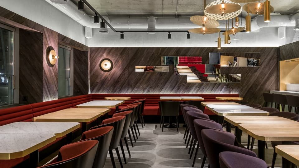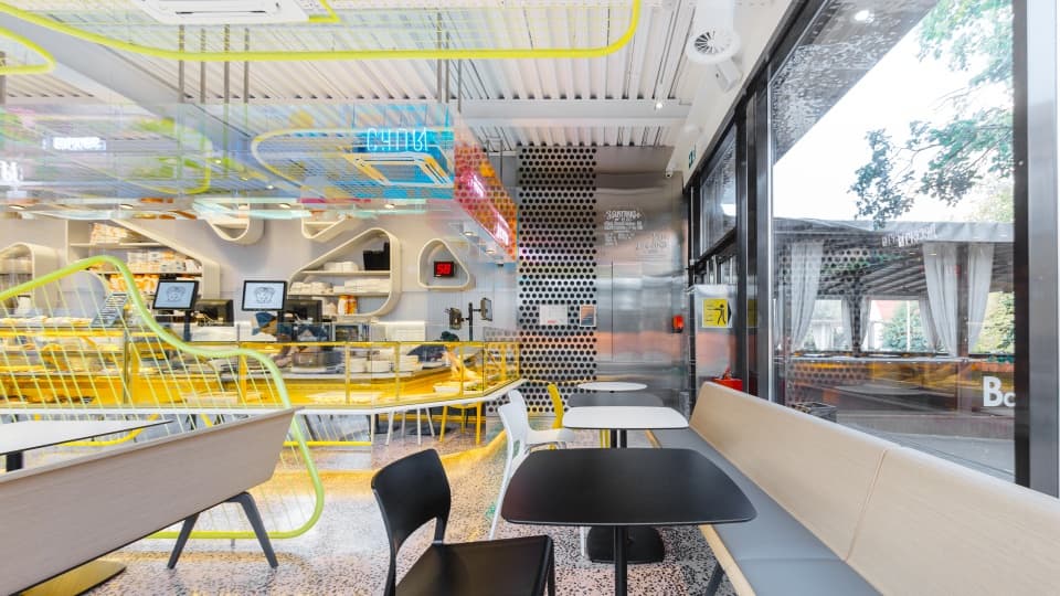 Бюро выполняет полный цикл работ по общественным интерьерам (концепция, проектирование, авторский надзор, управление проектом).