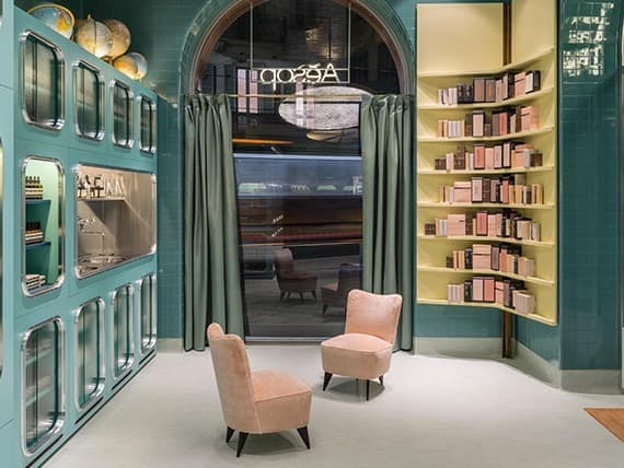 Дизайном второго миланского бутика австралийском марки занимались ребята из Dimore Studio. У них получилось создать нечто среднее между научной лабораторией и выставочным пространством: пузырьки и баночки дизайнеры поместили в серо-голубые металлические шкафчики, расставленные вдоль стен, а о шоу-руме напоминают удобные кресла розового цвета. Заезжать сюда специально не обязательно, но если окажетесь рядом, обязательно загляните.