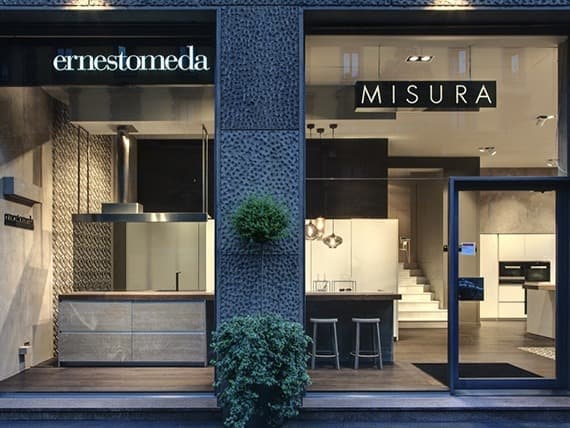 Флагманский магазин Ernestomeda открылся в 2015 году на огромной площади 100 кв. м, рядом со станцией метро Duomo. Дизайном пространства занимался Джузеппе Бавузо. Сейчас на трех витринах шоурума представлены все самые последние модели бренда, известного по-настоящими космическими кухнями XXI.