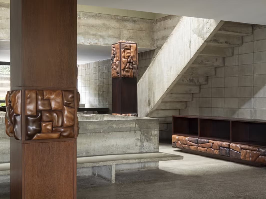 Коллекция включает тотемные скульптуры, кофейные столы и консоль, где контраст между структурой и случайностью становится главным выразительным инструментом. Объекты балансируют между бруталистской строгостью и природной текстурностью, подчеркивая ценность «несовершенного» материала.![]()