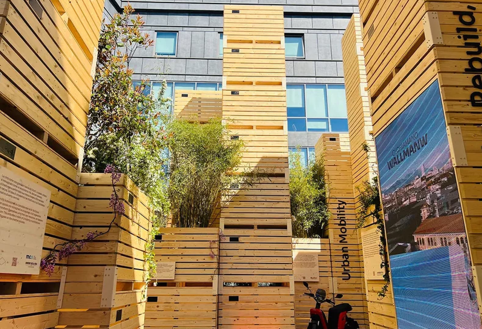 В своей инсталляции команда Mario Cucinella Architects представляет, как может выглядеть город будущего, который существует в гармонии с природой и в котором ключевую роль играет процесс саморегенерации. Архитекторы трансформировали внутренний двор штаб-квартиры итальянской газеты Corriere della Sera с помощью серии деревянных ящиков для овощей: по задумке студии они иллюстрируют принципиально новый подход к городскому строительству и дизайну. «Urban Mining демонстрирует города как экосистемы, способные к самодеконструкции посредством уже имеющихся материалов, и продвигает круговой подход к архитектуре, где центральное место занимает креативный процесс», — рассказывает об инсталляции Марио Кучинелла.