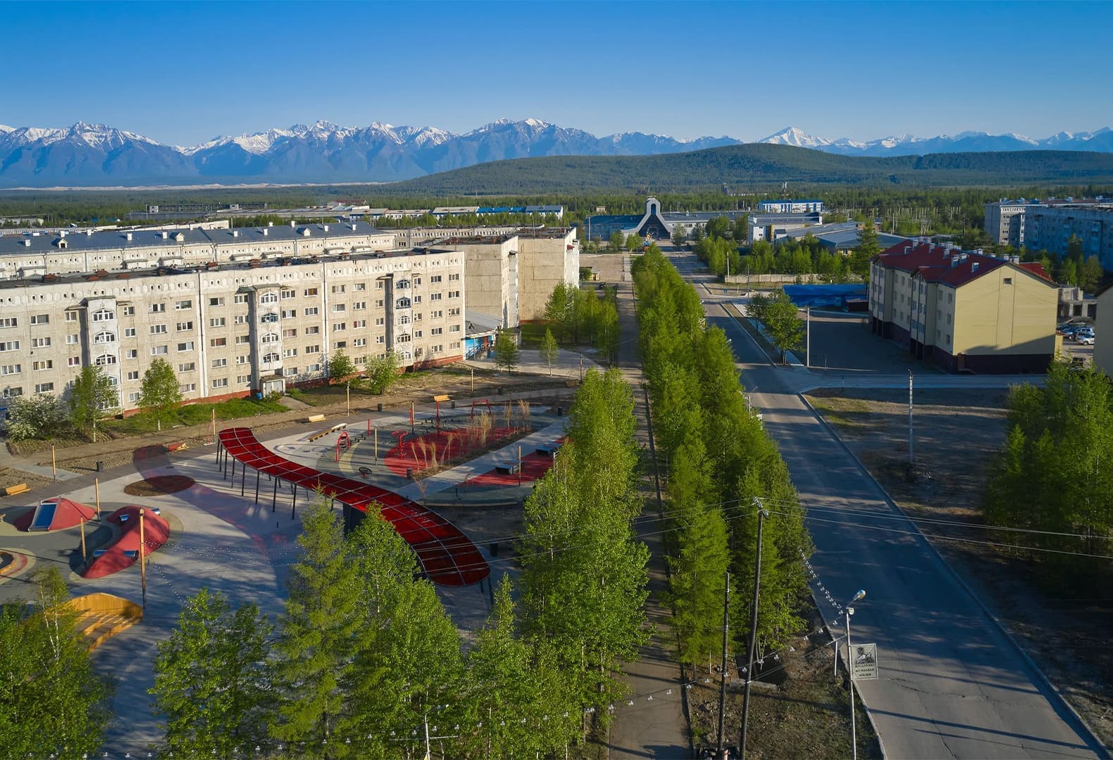 Благодаря команде архитектурного бюро CORE в Новой Чаре – небольшом поселке в Забайкальском крае – появилось новое привлекательное пространство. Расположенный посреди плотной городской застройки и вблизи железнодорожного вокзала сквер продуман для использования круглый год. Так, летом местные жители могут наслаждаться сухим фонтаном и местами для отдыха, а зимой площадь трансформируется в каток и площадку для проведения общественных мероприятий. Концепция архитекторов также предполагает павильон с сувенирным магазином и кофейней. При разработке проекта команда учла и местный контекст: к примеру, игровая площадка напоминает о природной достопримечательности – Чарских песках, – а навес был украшен эвенкийскими орнаментами.