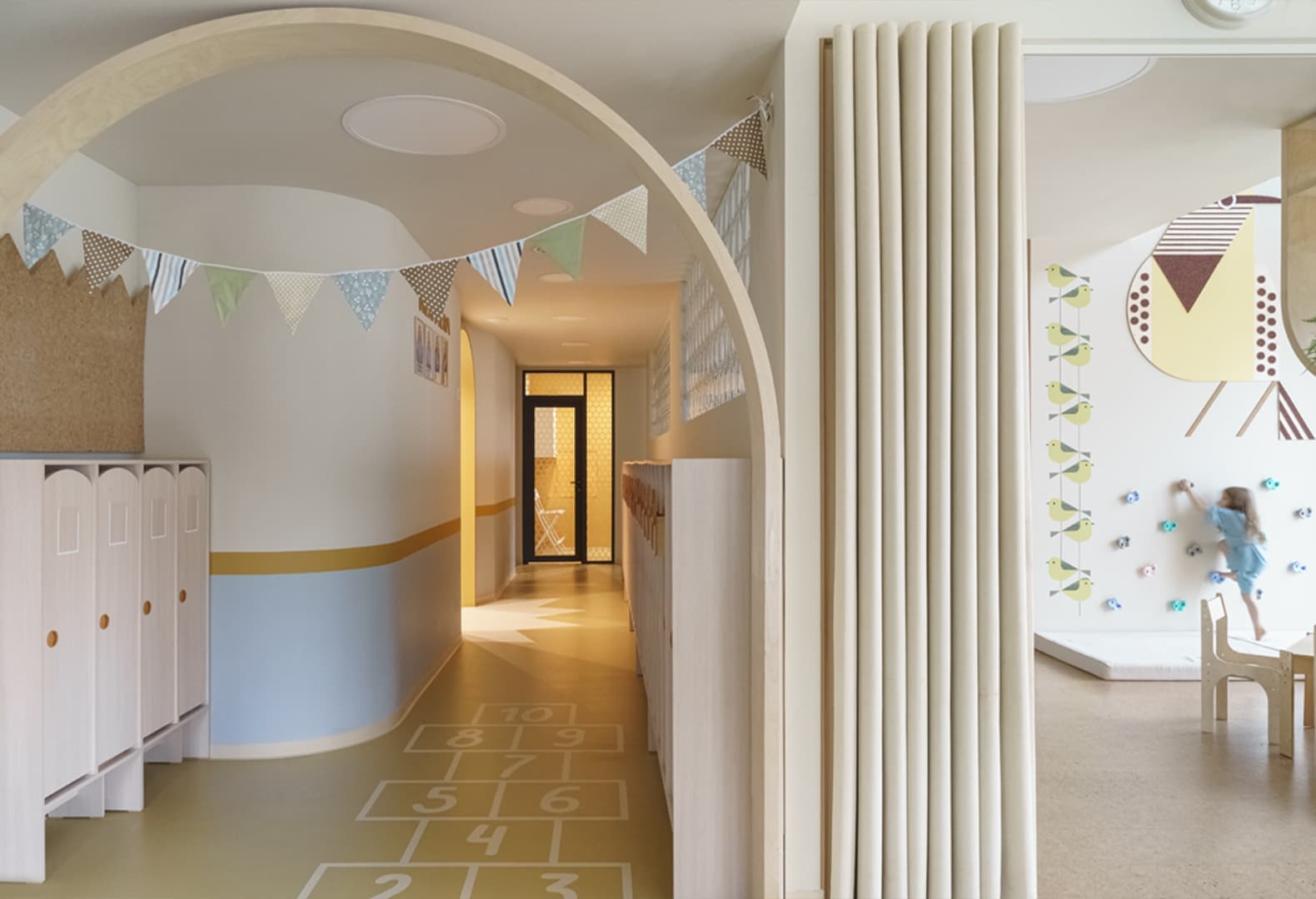 Пространство, наравне с родителями и социальной средой, напрямую влияет на развитие ребенка. Поэтому перед архитекторами и дизайнерами стоит особенно сложная и ответственная задача: важно не только создать визуально привлекательную среду, но и продумать гибкость сценариев, вариативность использования и соразмерный ребенку масштаб. Вместе с экспертами разбираемся, какие еще принципы лежат в основе продуманного детского пространства, и показываем проекты, где они реализованы на практике.