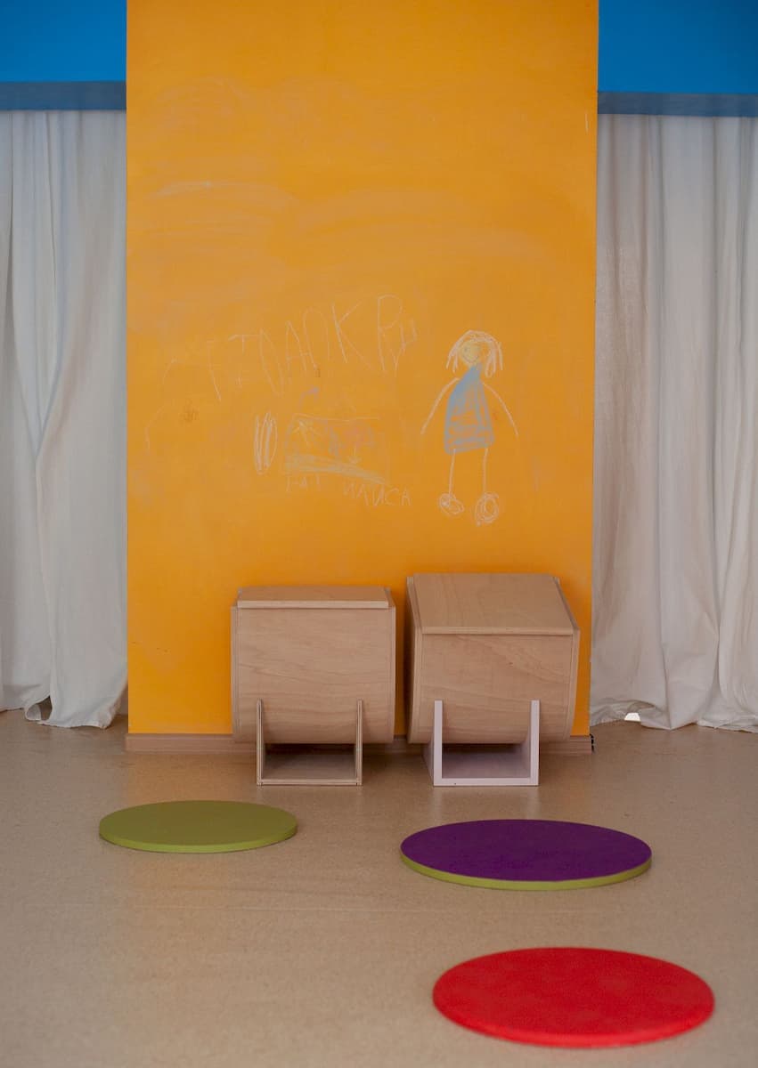 Масштаб должен быть гуманным по отношению к ребенку. Взрослые часто смотрят на детей свысока, но ребенок — это уже полноценный человек. Поэтому предметы и мебель должны быть соразмерны ему. Выбор материалов тоже имеет огромное значение. На протяжении всей эволюции человек взаимодействовал с разными материалами, а сегодня это разнообразие во многом утрачено.