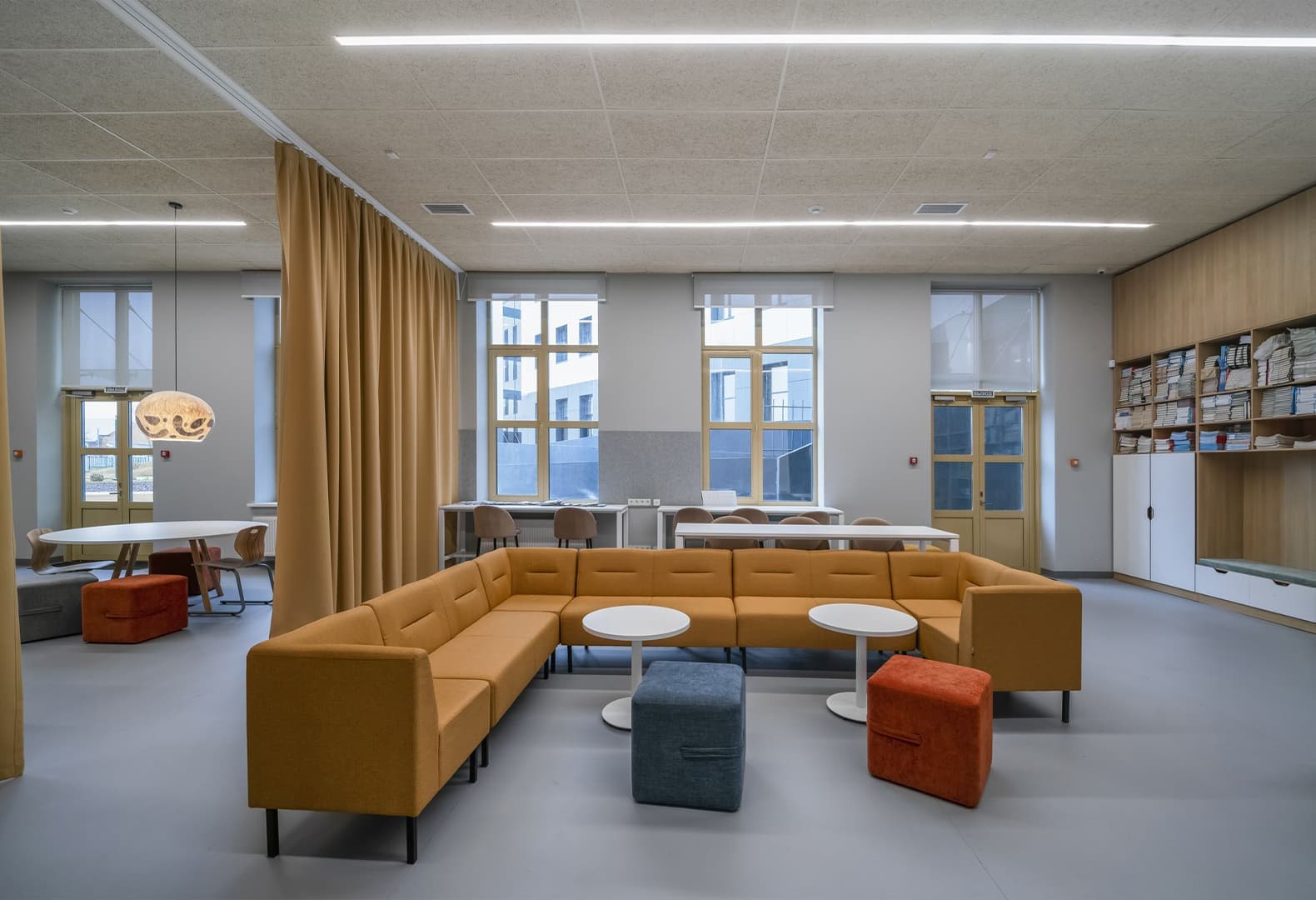 С точки зрения развития ребенка особенно важна вариативность. Среда не должна быть жесткой и однотипной. Нужны разные режимы: места для концентрации, общения, уединения, свободной активности. Когда пространство можно адаптировать под разные задачи, а мебель и зонирование не закрепляют ребенка в одной роли, это поддерживает самостоятельность, снижает тревожность и повышает вовлеченность.