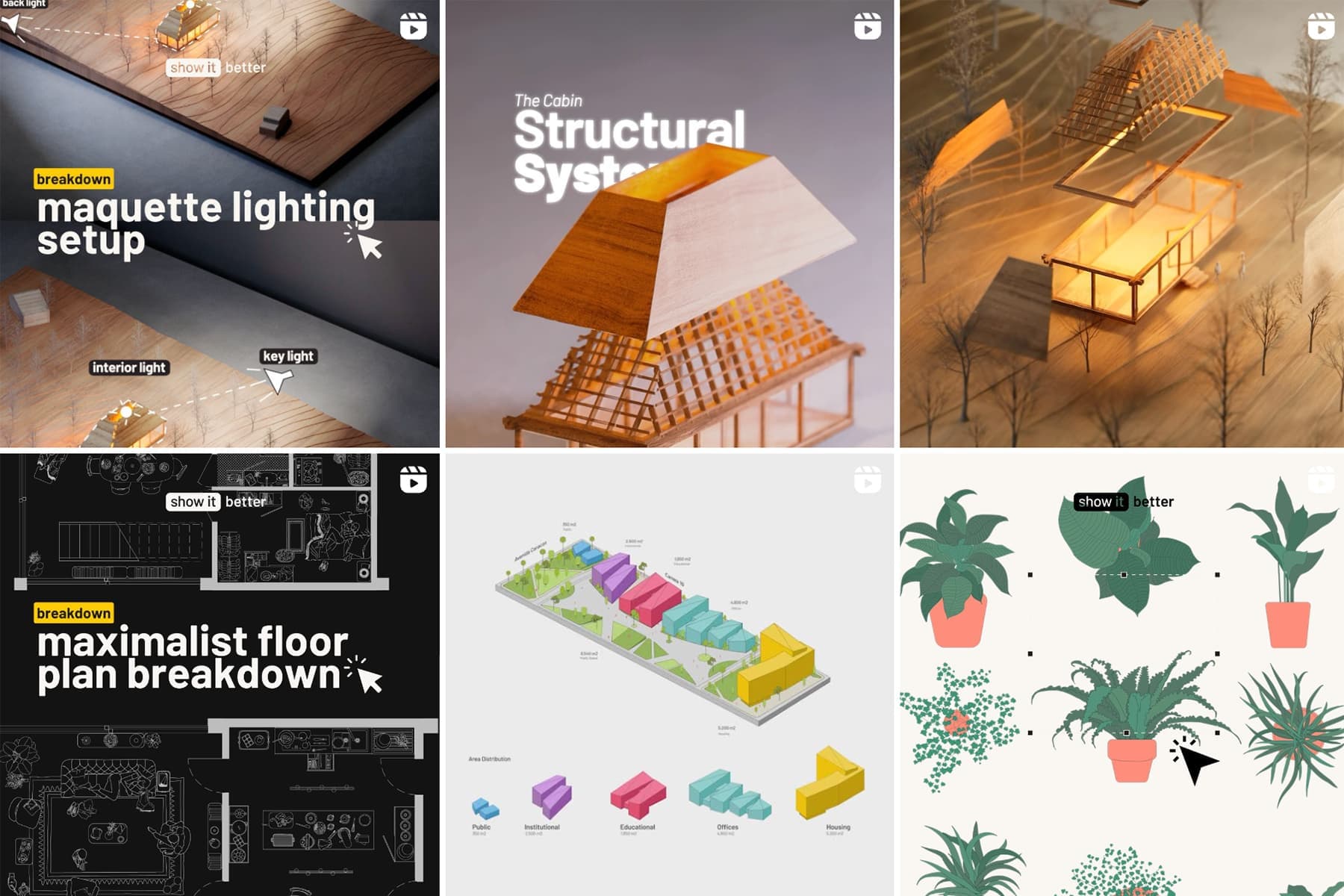 Я рекомендую выходить за рамки, учиться думать нестандартно, изучать новые программы для графики и моделирования, рендер-движки, а также связки взаимодействия между этими программами. Время от времени просматривайте веб-ресурсы о тенденциях в графике и подходе к созданию портфолио. Например, @letsshowitbetter, @renderbox.magazine, @axo_madness, @act.of.mapping. Следите за креативными студиями, особенно за кросс-дисциплинарными. А вот Archdaily, Landezine и подобные ресурсы оставьте для понимания повестки, но не для заимствования идей и подготовки портфолио. Иными словами — думайте о своей индивидуальности, не стесняйтесь ошибаться и ориентируйтесь на результат, который в будущем легко обновить.