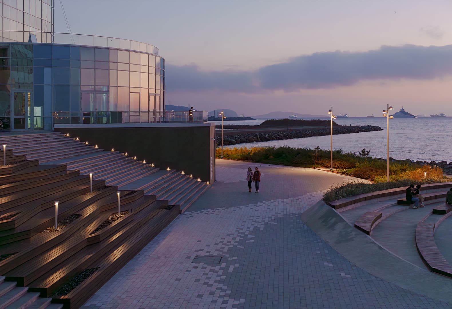 Мыс Бурный во Владивостоке сочетает суровую природу и масштабные панорамные виды: сильные ветры, каменистый рельеф и замерзающее зимой море создают непростые условия для освещения. Использование традиционных высоких опор здесь стало бы настоящим эстетическим преступлением — они разрушили бы масштабы пространства, заслонили океан и отвлекли внимание от линии горизонта. Свет встроен низко: боллардами, в подпорные стены, настилы и лестницы, с асимметричным распределением, чтобы деликатно обозначать контуры и маршруты, сохраняя ощущение свободы и открытости побережья.