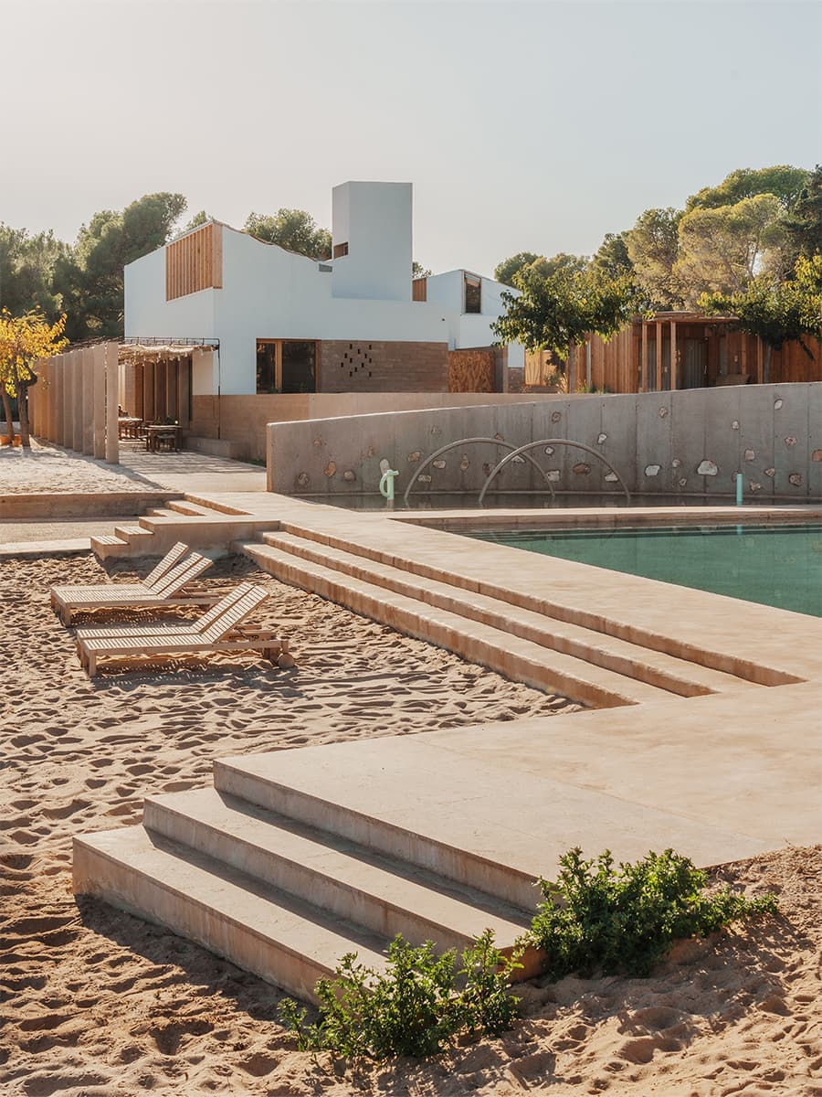 Большое внимание команды Bajet Giramé и JAAS уделили интеграции открытого пространства в окружающий контекст. Это также подразумевало внедрение в проект устойчивый практик. К примеру, все постройки на территории комплекса построены из камня Sènia, который добывается в карьере всего в десяти километрах от участка, и сборных земляных блоков. Такое сочетание природного сырья позволило добиться мягкого эстетического эффекта и комфортного температурного режима без ущерба окружающей среде. Кроме того, заказчик и архитекторы тщательно взвешивали все решения о сносе существующих сооружений, прибегая к этой мере только в случае крайней необходимости.