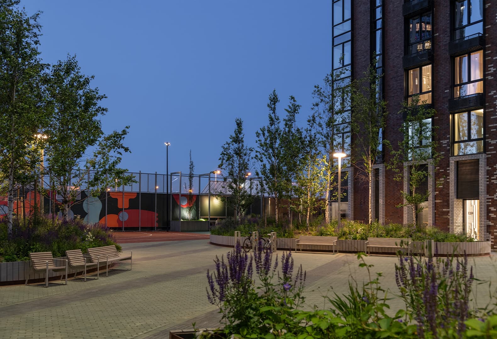 Одним из таких проектов для нас является благоустройство территории ЖК «Метрополия». Это был наш первый опыт создания общественного пространства в жилом комплексе в рамках собственной практики.