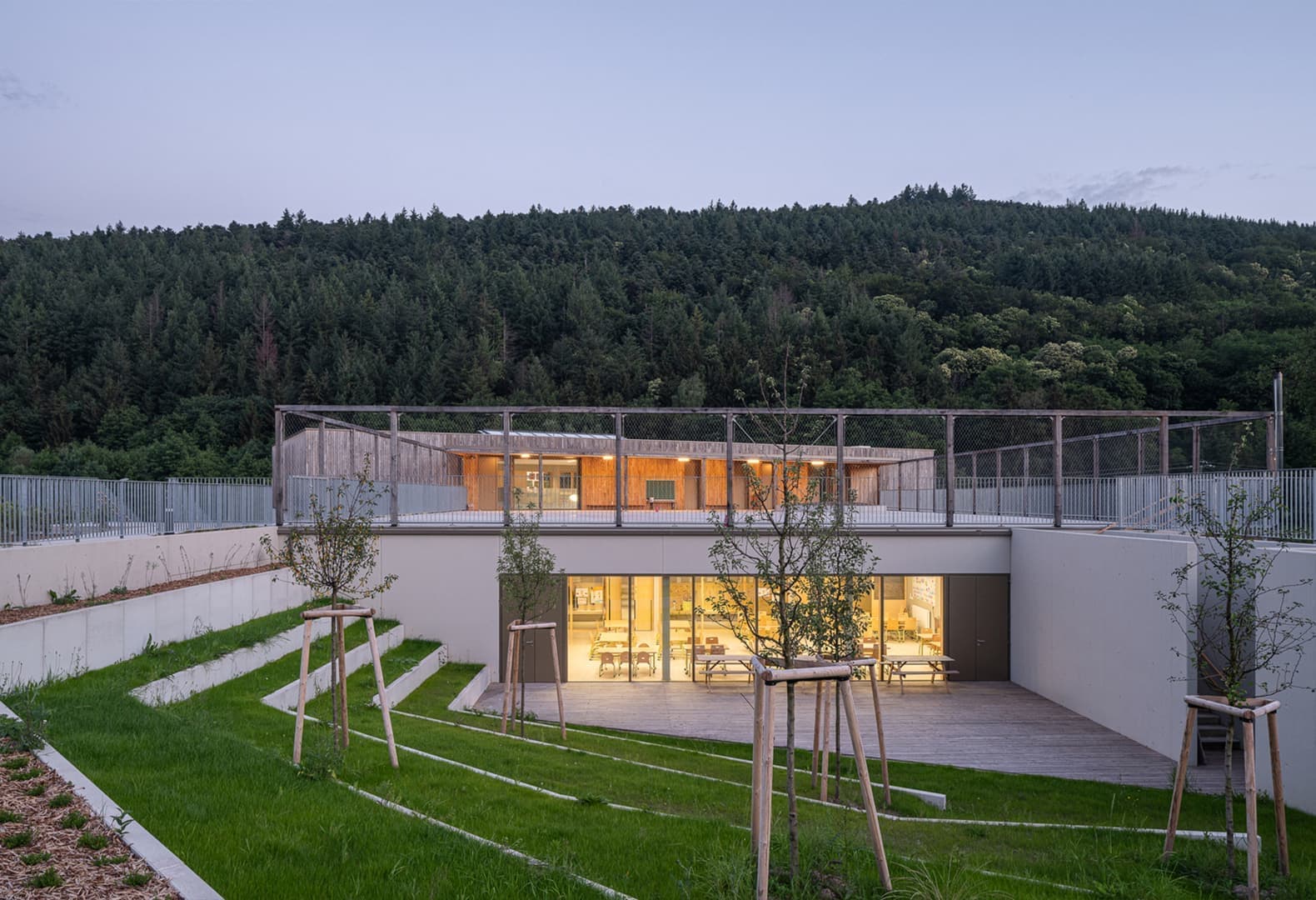 В начале 2020 года во французском регионе Гранд-Эст был запущен новый проект развития, предполагающий обновление нескольких объектов муниципальной инфраструктуры. При этом основополагающими требованиями к зданиям стали экологичность и их гармоничная интеграция в природный контекст. Архитекторы студии f+f architectes разработали проект здания школы и центра дополнительного образования в Мезонсгутте, изначально предполагая, что этот комплекс не просто станет архитектурной достопримечательностью, но будет соответствовать образовательной программе, помогать в реализации передовых педагогических стратегий и максимально бережно и гармонично встроится в окружающую природную среду.