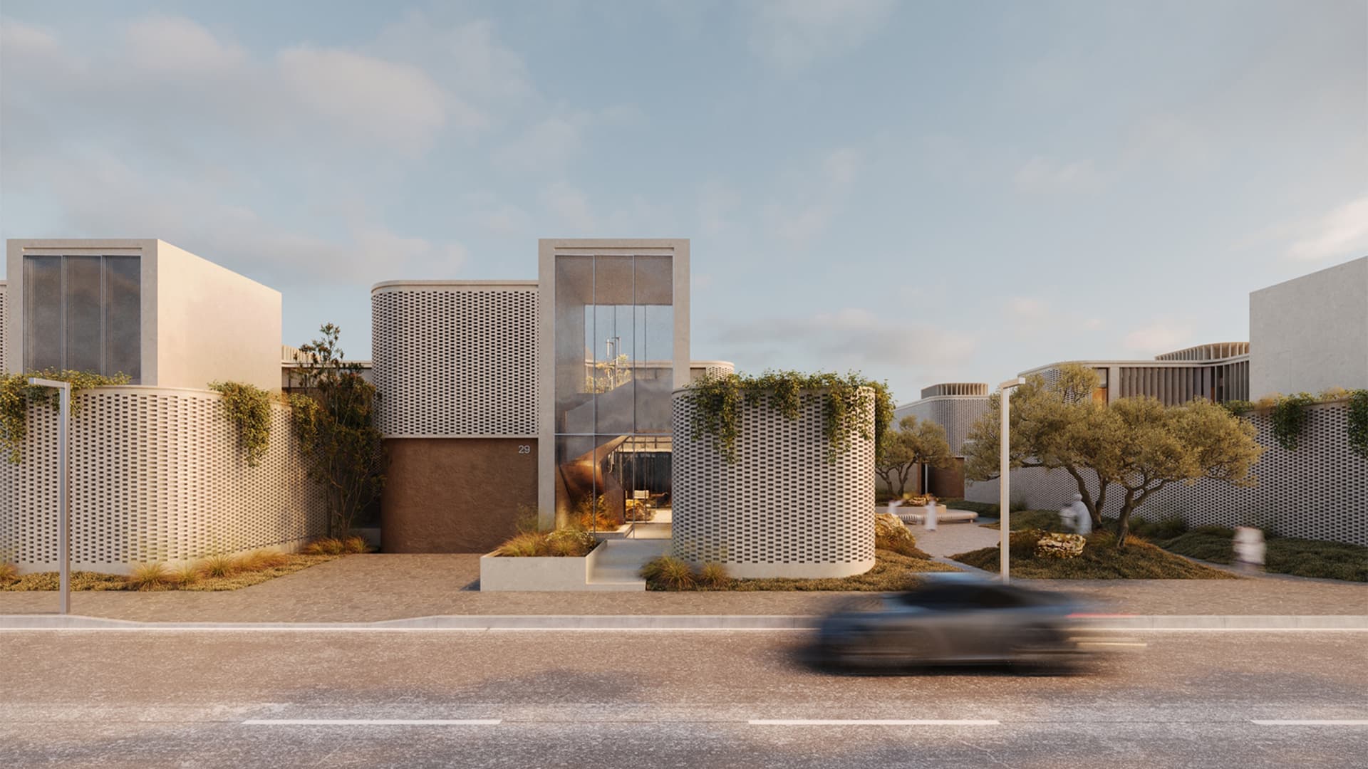 Четырехметровая пальма и лестница из стеклоблоков в интерьере австралийского шоурума — проект Ellison Studios