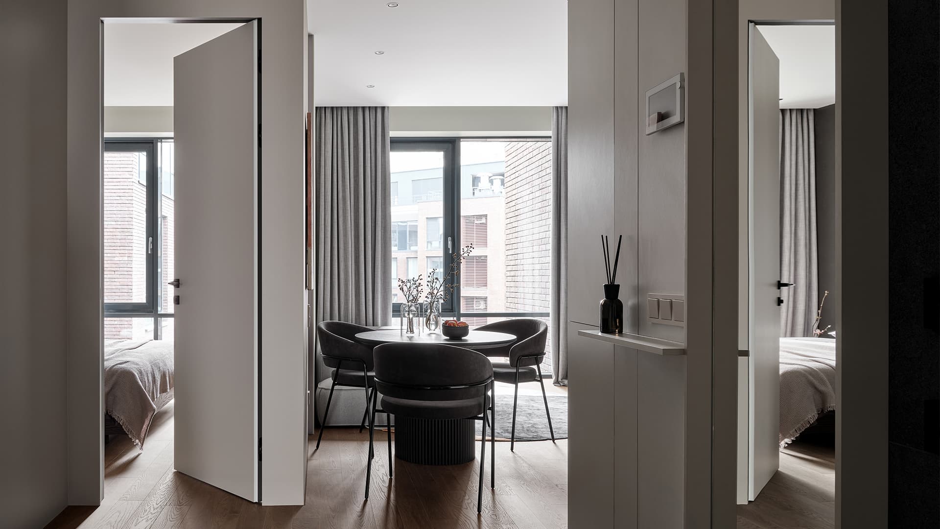 Стеклянные перегородки и монохромная палитра в интерьере квартиры для отдыха — проект Оксаны Пирко и Дарьи Гончаровой